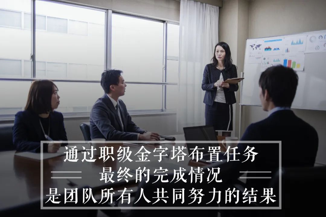 实际上,通过职级金字塔往下传导,一个上级往往要布置任务给好几个下级,而最终这个任务的完成情况,往往是团队所有人共同努力的结果。