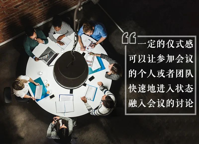 当然,实际操作中,不同类型的会议操作方式不尽相同。比如商务洽谈、工作坊甚至是董事会,这些虽然都是会议,但是无论氛围还是内容,差别都是很大的。一定的仪式感,可以让参加会议的个人或者团队快速地进入状态,融入会议的讨论。