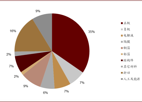 图表: 电解液当前在三元动力电池中成本占比约7%