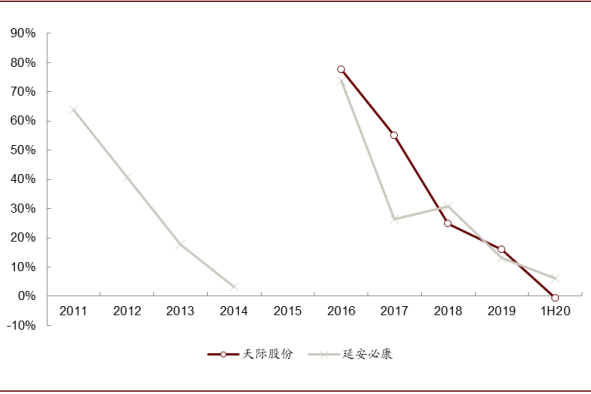 ► LiPF6价格在超跌区间,行业盈利能力低位。需求回暖带动价格回复至正常盈利区间水平。受行业议价能力较弱、2H19以来较为低迷影响,LiPF6价格一路走低,叠加开工率有限,供应商盈利能力持续下降,1H20天际股份LiPF6业务毛利率为负,必康股份1H20毛利率下降至6%,行业盈利能力降至低点。需求显著回暖下,开工率回升,同时相对议价能力有所好转,带动LiPF6价格逐步回涨至年初水平,盈利能力得到修复。