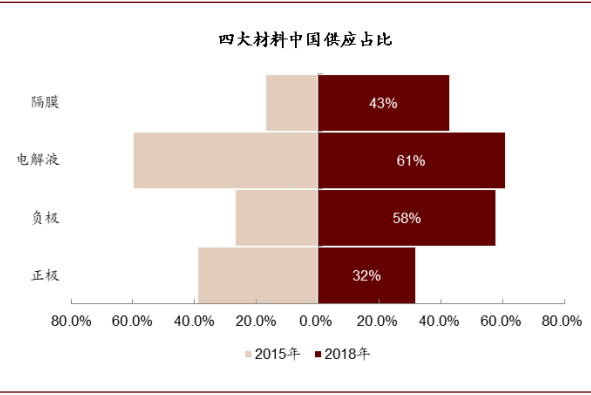 图表: 电解液是四大材料里中国供应占比最高的材料