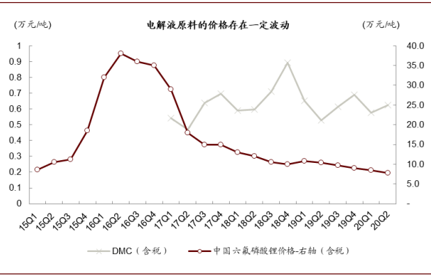 图表: 电解液原料的价格存在一定波动