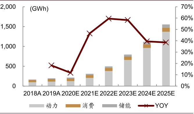 图表: 我们认为动力电池将驱动全球锂电需求高增