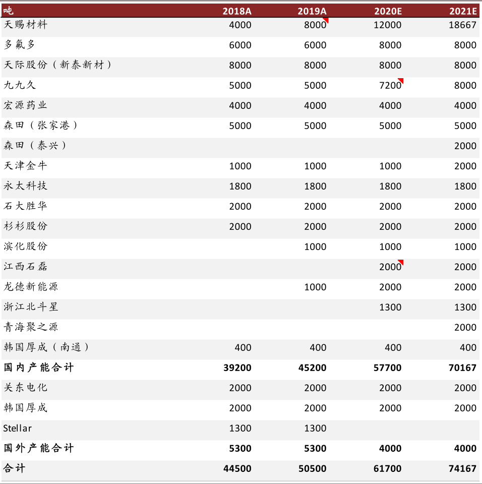 行业产能利用率2020年5月整体在50%左右,3Q20后快速拉升至80%以上,多氟多等龙头目前基本满产。