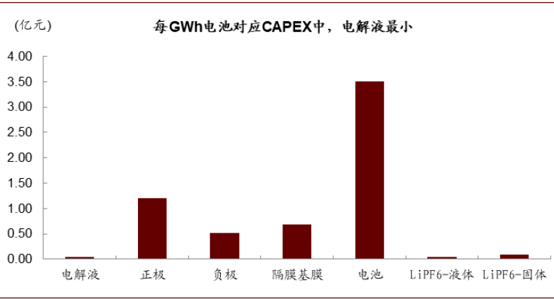 图表: 电解液环节所需CAPEX较小(2019年)