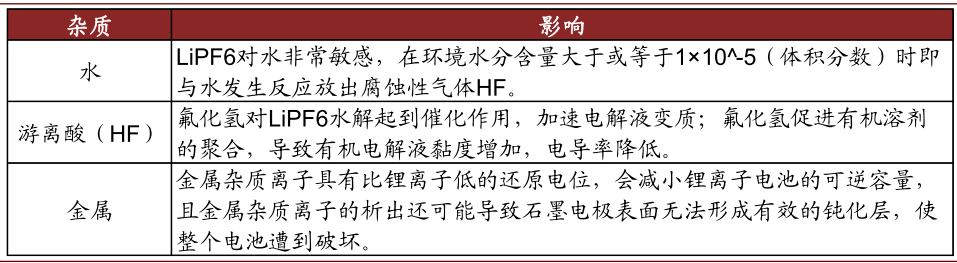 图表: 六氟磷酸锂中杂质危害较大