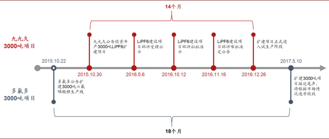 图表: 典型六氟磷酸锂项目扩建周期