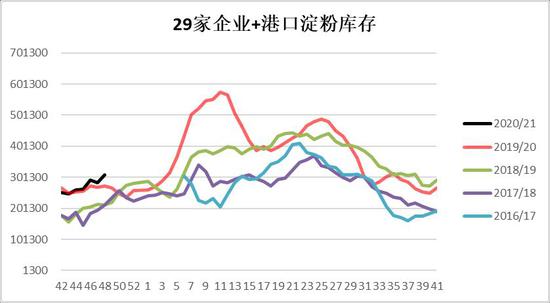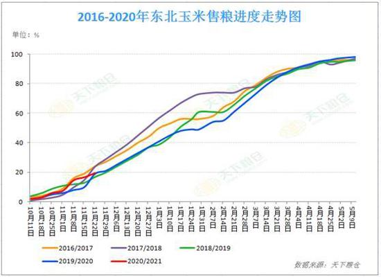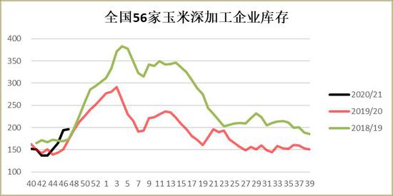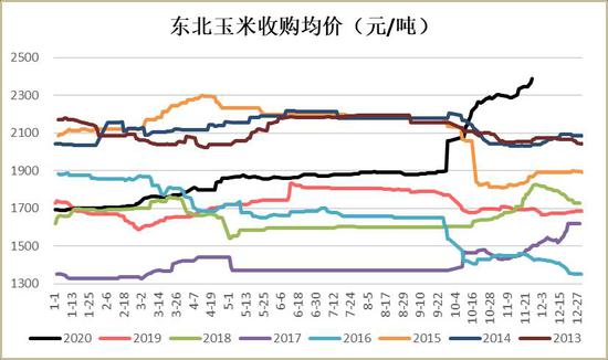 截止11月20日,东北产区售粮进度19.35%,同比去年加快0.4%,华北黄淮产区售粮进度22.76%,同比去年加快2%。今年售粮进度之所以明显快于往年,主要由于当前玉米现货价格较高,农户对当前价格认可,售粮积极性较高。对比历年东北现货价格来看,目前价格已经超过2015年价格的高点,价格已运行至历史高位。