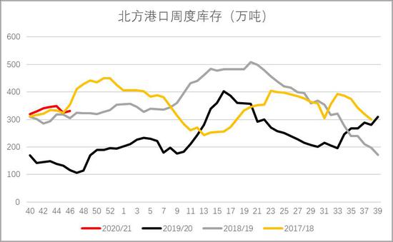 目前北港库存来到了近几年高位,主要由于贸易商看好后市,趁玉米上市在港口大量屯粮,待价而沽。深加工库存相对较低,且东北库存明显低于去年,补库动力十足。新年度,由于养殖企业特别是生猪养殖企业利润丰厚,对原料玉米价格容允度更高,但也对质量要求更高。目前南方饲料企业有廉价进口玉米补充,对国内高价玉米认可度不高,这也导致南方价格偏弱。而华北华中也有小麦及陈化谷物替代,加上华北玉米上市相对早,价格并未想东北涨势迅猛。东北主要是深加工想留住粮源,且库存较低。短期来看,东北提价加速,只有上大冻,下游开始大量建库,可能才会博弈出一个价格高点。毕竟后期的战场主要在东北,东北供应全国,虽然短期南方销区价格相对弱,但只要后期还要东北补充,价格自然会水涨船高。