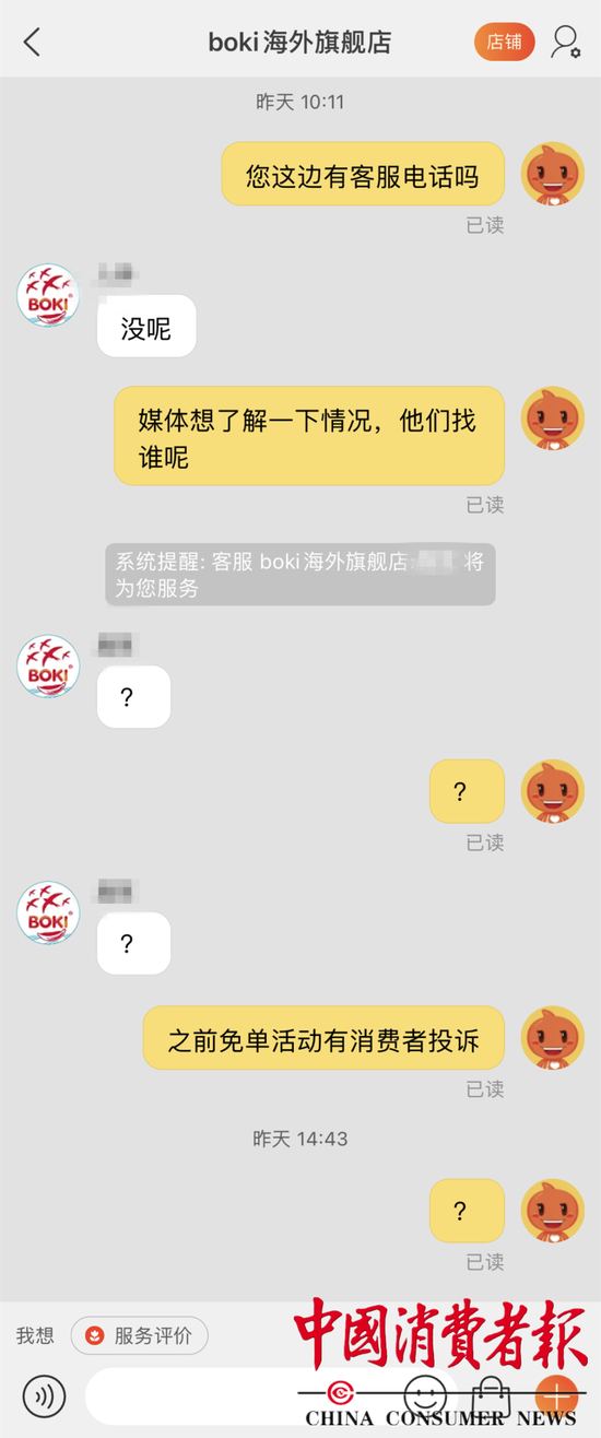 ▲消费者与客服的对话截图。