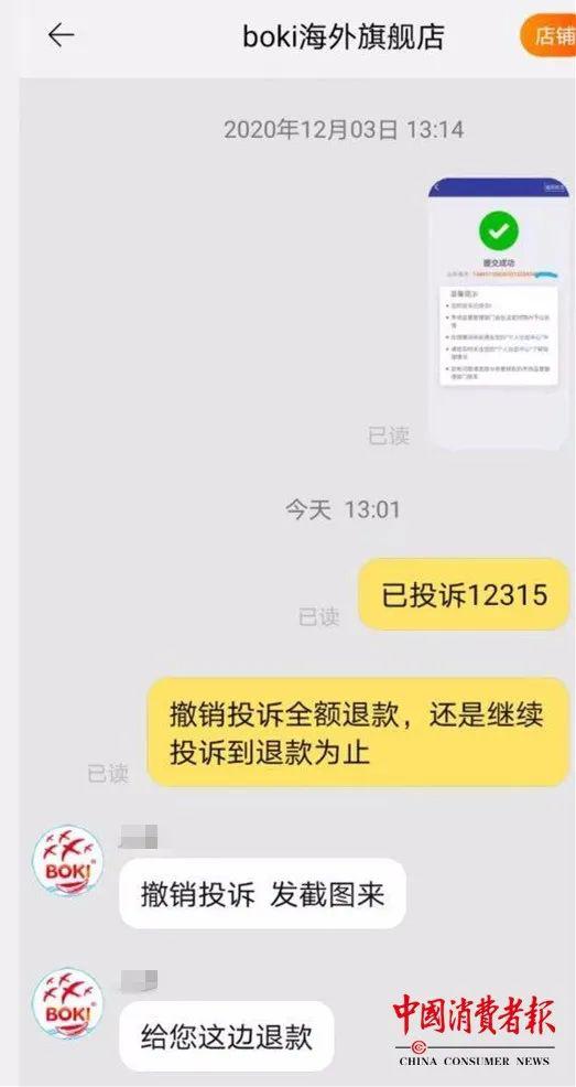 因为有消费者投诉到12315平台