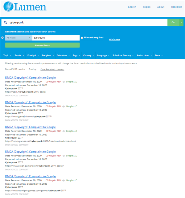 版权监测网站显示,CDPR发送了大量DMCA维权通知,要求相关平台撤下非法资源。不过,就像以往所有的正版盗版行动一样,这永远是一场猫鼠游戏。