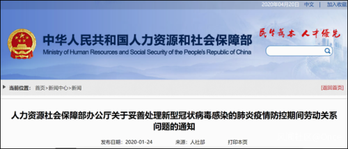 早在1月24日,人社部就曾下发通知,明确:对新型冠状病毒感染的肺炎患者、疑似病人、密切接触者在其隔离治疗期间或医学观察期间,以及因政府实施隔离措施或采取其他紧急措施导致职工不能提供正常劳动的,企业应当支付职工在此期间的工作报酬,并不得依据《劳动合同法》第四十条、四十一条与职工解除劳动合同。