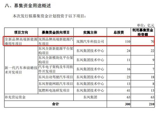 东风集团此次IPO拟募资210亿元,用于全新品牌高端新能源 乘用车项目、新一代汽车和前瞻技术开发项目和补充营运资金。