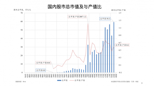 朱云来:今天很荣幸参与三十年的讨论,在这三十年中有很多重要的事件,我们通过下面这张图来可以看到三十年的风雨历程。今天两位交易所的老总都在,市场发展的前传其实从1990年“前夕”,两家交易所正式拉开帷幕开始的。第二个点也是刚才嘉宾讲的2005年的股权分置改革,通过下面这张图我们可以看到股票总体趋势也是这样,之前是一个水平,之后出现了一个巨大的提升,其中也包括了2007年的股灾,总体可以看得出来,股市还是经过了非常系统性的发展。时间有限,今天不能过多展开。
