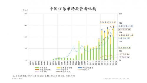 投资者结构这张图中可以看出我们专业性机构所占的比例非常小,大量的投资者还是散户,这个也是有待于未来的进一步发展。金融是一件很复杂的事情,让每个人都懂得金融道理是不太容易的,个人直接分散投资并把握投资风险也是非常不容易的,所以未来机构化发展应该还是有发展空间的。