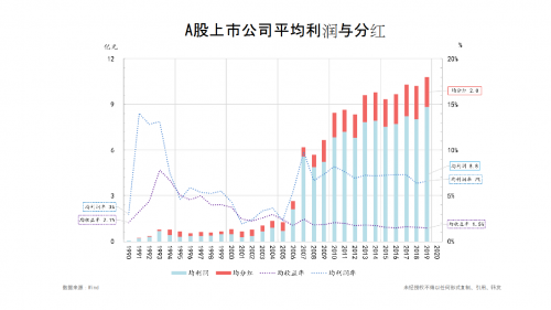 下面这张图是我们平均的上市公司盈利水平还有分红的程度,应该说,总体能看出分红呈现提升趋势,是对当下收益和未来成长的平衡;大家可以看到2005年之后盈利水平大大提高,但是这个里面有一个背景需要我们注意,在2002年的时候中国货币总量是18.5万亿元,实际上根据央行官网数据截止至今年10月中国的货币已经是215万亿元,这当中存在的是近12倍不同的背景。