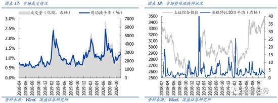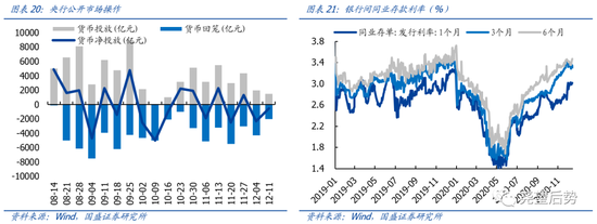 2、近期市场调整,主要因为一些短期因素导致,我们认为不会影响跨年行情的持续性,也不必过度担忧。近期市场调整,主要原因在于:1)11月以来,随着跨年行情开启,市场明显回暖,尤其是金融、顺周期等权重板块更显著上涨。短期也出现自发性的回调压力;2)我们一直强调,以公募基金、保险等为代表的机构资金是今年市场的主要支撑力量。但随着年底考核期临近,机构资金获利了结情绪升温或至少不愿追高,也令短期内市场上行动力不足。3)此外,近期金融监管收紧,以及社融增速见顶,也引发市场对于信用收紧的担忧。但我们认为,在经济复苏动力偏弱、内外部压力犹存的情况下,货币政策不会系统性收紧。近期央行也连续投放流动性带动市场利率下行,政治局会议也继续要求“努力保持经济运行在合理区间”。因此,我们认为应当积极应对调整,不必过度担忧,跨年行情将持续。