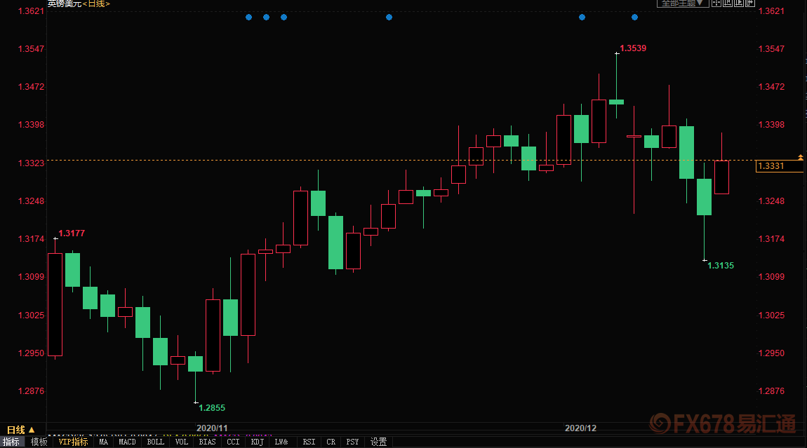 英镑兑美元和欧元周一(12月14日)上涨,英镑兑美元最高曾触及1.3384。不过,目前涨幅收窄,英镑兑美元震荡回落至1.3320附近,因市场担忧情绪仍存,英镑买盘依然较弱。