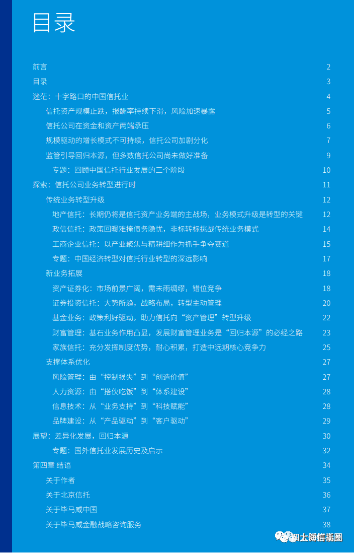 来源:毕马威中国联合北京国际信托11月发布了《道阻且长,行则将至——中国信托行业发展趋势和战略转型研究报告》