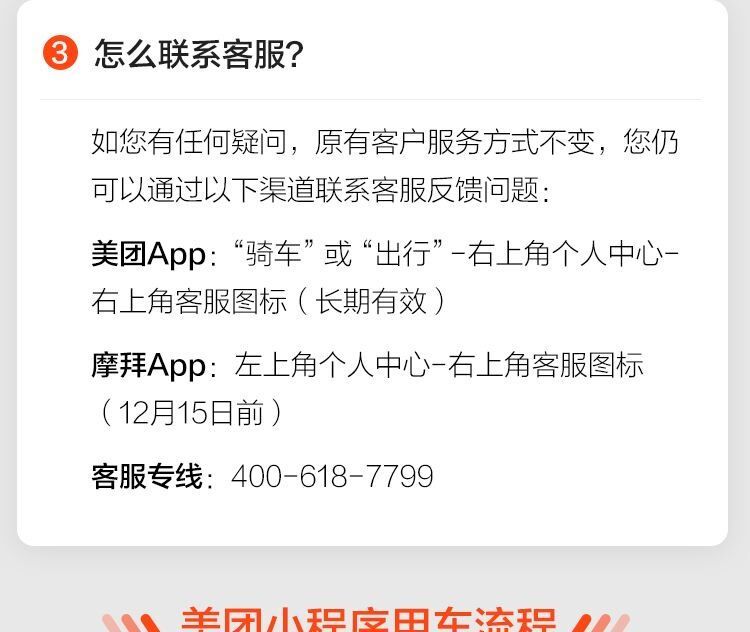 据摩拜微信小程序公布,摩拜APP、摩拜微信小程序将于2020年12月14日晚23时59分停止服务和运营。摩拜单车全面接入美团并更名美团单车。原摩拜账号中的余额、骑行卡套餐等权益可进入美团APP内查询,可继续使用。如需要退骑行卡套餐联系人工客服;如持有从外部渠道购买的骑行套餐,联系购买方退款。