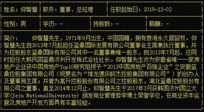 仰智慧并非籍籍无名的人物。公开信息显示,仰智慧祖籍安徽安庆,1971年生人,任安徽蓝鼎控股集团董事局主席、香港蓝鼎国际发展有限公司董事局主席、蓝鼎济州开发株式会社会长。仰智慧进军海外博彩业,其名下博彩公司涉及韩国、菲律宾等多个国家和地区,被业界称为“海外赌王”。