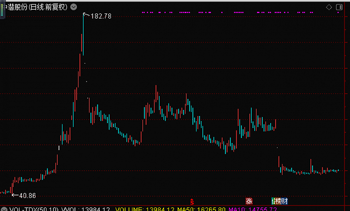 也正是在这短短一年多时间里,中潜股份的股价来了一波暴涨。从2019年5月到2020年4月,公司股价1年年从低点的8.92元每股飙涨至最高点的182.78元每股,涨幅达19倍。当然,市场没有只涨不跌,中潜股份的股价在2020年4月上摸高点之后,出现拐头暴跌,留下一地鸡毛。
