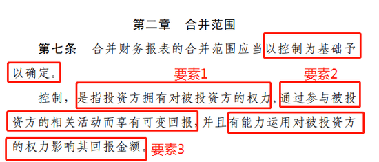 赵岑认为,根据《企业会计准则第33号——合并财务报表》:合并财务报表的合并范围应当以控制为基础予以确定,控制含有三要素。