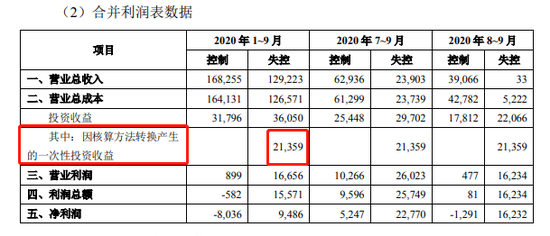 模拟的合并报表结果显示,基于国盛证券100%股权价值估值结论,在转换日(2020年8月1日)因合并范围变更要求的核算方法变更实现一次性投资收益 2.1359亿元。