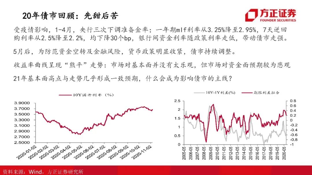 1、2020年债市先甜后苦,21年基本面高点与走势几乎形成一致预期,报告将探寻影响债市的主线。