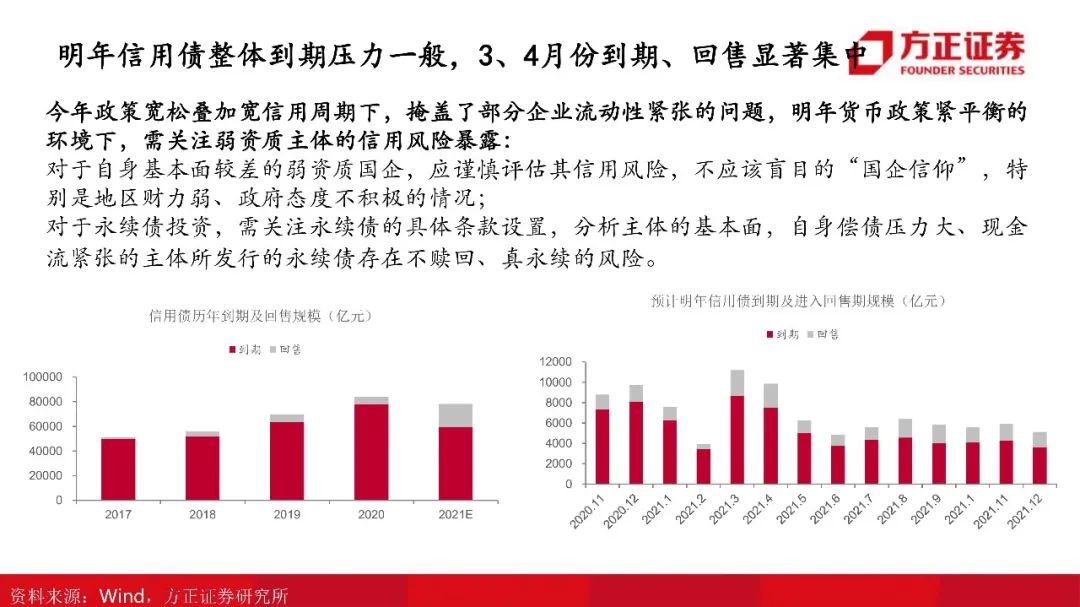 5、今年政策宽松叠加宽信用周期下,掩盖了部分企业流动性紧张的问题,明年货币政策紧平衡的环境下,需关注弱资质主体的信用风险暴露:对于自身基本面较差的弱资质国企,应谨慎评估其信用风险,不应该盲目的“国企信仰”,特别是地区财力弱、政府态度不积极的情况;对于永续债投资,需关注永续债的具体条款设置,分析主体的基本面,自身偿债压力大、现金流紧张的主体所发行的永续债存在不赎回、真永续的风险。