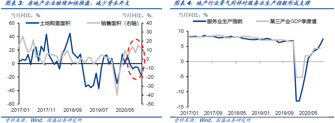 地产开始逐步走弱,土地购置增速大幅下滑。11月地产数据开始逐步走弱,当月地产销售面积同比增长12.0%,增速较上月下降3.3个百分点,但依然处于高位。销售面积放缓反映地产企业过去几个月加快推盘的力量开始趋弱。随着地产企业推盘有所放缓,地产企业建设进度也有所回落, 11月房地产投资同比增长10.9%,增速较上月下降1.8个百分点。同时,地产企业拿地速度大幅回落,11月土地购置面积同比下跌15.6%,跌幅较上月加深10.0个百分点。地产企业大幅放缓拿地,以及推盘节奏逐步放缓,意味着地产数据将逐步走弱,从对需求的带动情况来看,将有过去几个月的支撑需求转为抑制需求。