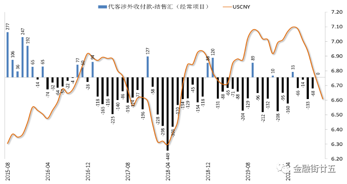 图5:经常项目下跨境涉外收付款与结售汇的差额