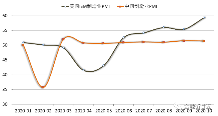 但这不足以解释8月以来人民币的加速升值,因为实际上我国经济修复斜率在逐步放缓,导致中美之间经济基本面的差异逐步收敛。从制造业PMI数据来看,我国经济较美国更早触底、更早反弹,且3月后基本稳定在50荣枯线上方;而疫情对美国经济的冲击主要体现在4、5月,此后经济加速复苏,力度和节奏明显快于我国。由此,中国相对于美国的经济基本面优势缩减,对人民币汇率的推升理应边际递减。