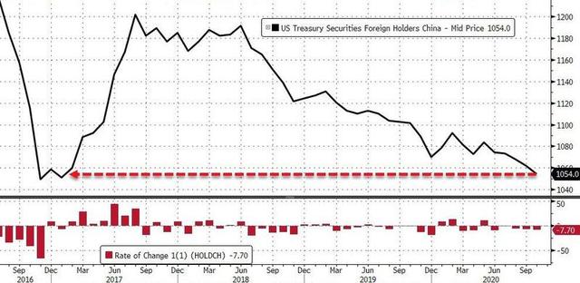 中国10月减持77亿美元美债,持仓跌至1.054万亿美元,为2017年1月以来的最低水平,连续五个月削减了美债持仓。
