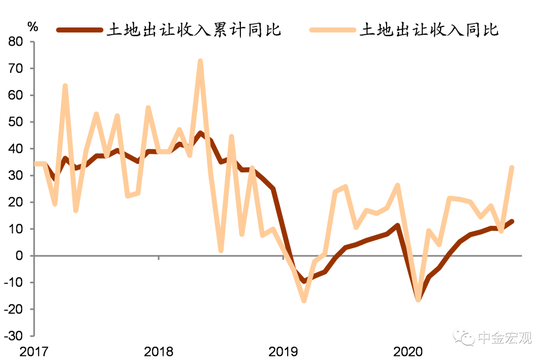 图表: 土地出让收入增速大幅上升