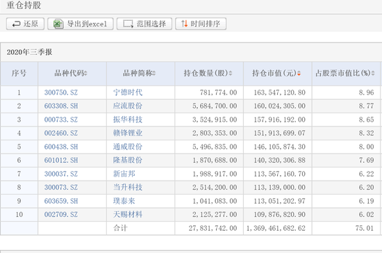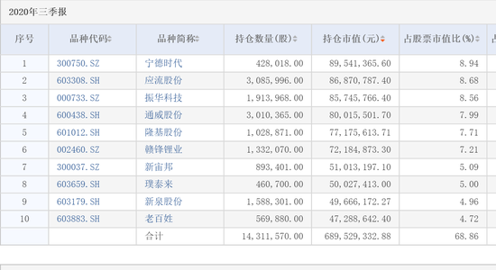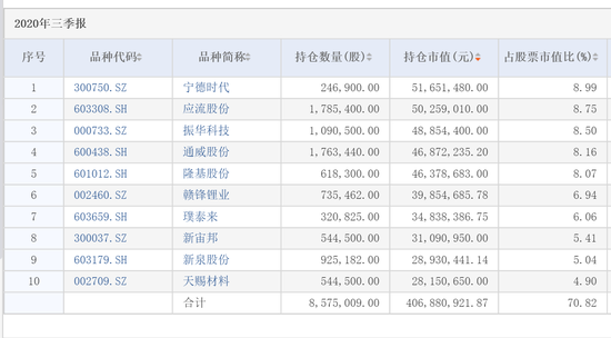 图片:农银汇理新能源主题三季末前十重仓股
