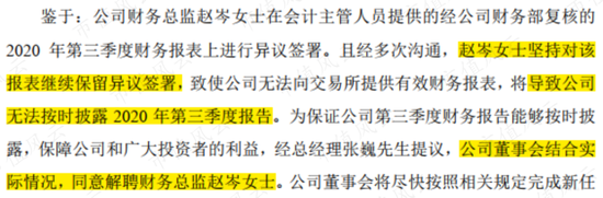 其实就在10月30日,三季报发布的前一天,赵岑还是国盛金控的财务总监。因为坚持在三季报上进行异议签署,同样被董事会解(开)聘(除)。