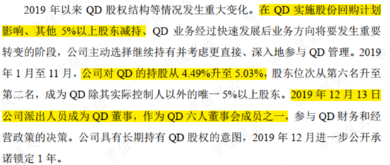 2020年4月29日,国盛金控董事会全票(包括赵岑)通过了将公司持有的Qudian Inc.(趣店,以下简称“趣店”)投资自2019年12月13日起由交易性金融资产转换为权益法核算的长期股权投资,此举将使得国盛金控2019年净利润和净资产均增加2.01亿元。
