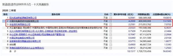 截至今年三季度末,华电资本和华宝信托分别为凯迪退的第二大股东和第三大股东,分别持有凯迪退4亿股和2.15亿股。
