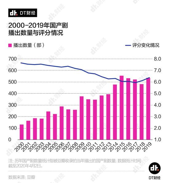 有一个数据:1998年,历年国剧数量首度突破100部(豆瓣统计)。在这之后,国剧数量持续增长,到了2019年,国剧一年的产量是535部。