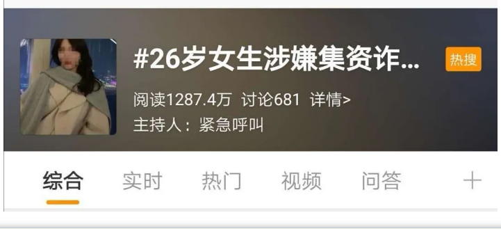 如果大家有印象的话,这个“白富美”在9月底的时候上过热搜。彼时,一则“26岁女生涉嫌集资诈骗1900万被公诉”的话题冲上微博热搜。