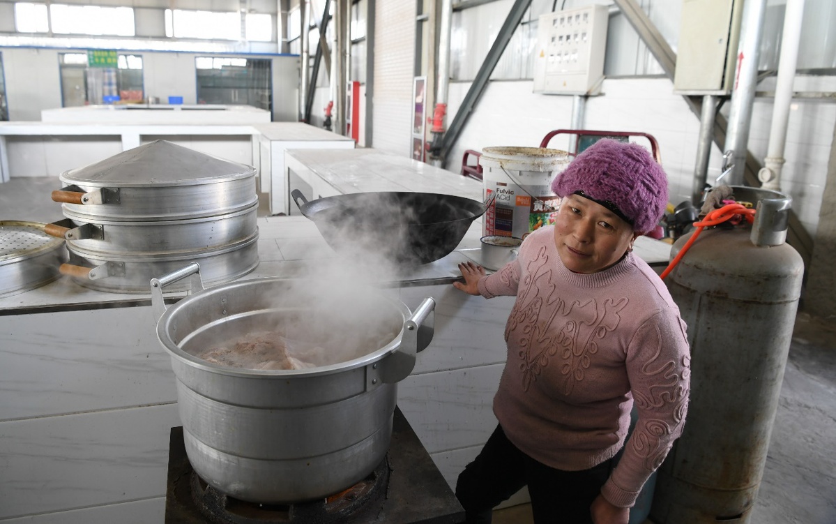 12月17日,宁夏银川闽宁镇暖阳融融,李部成和他的妻子马苏女早早起来,他们一起来到家门口的集市上,这里有他们刚开了三个月的特色羊羔肉店。