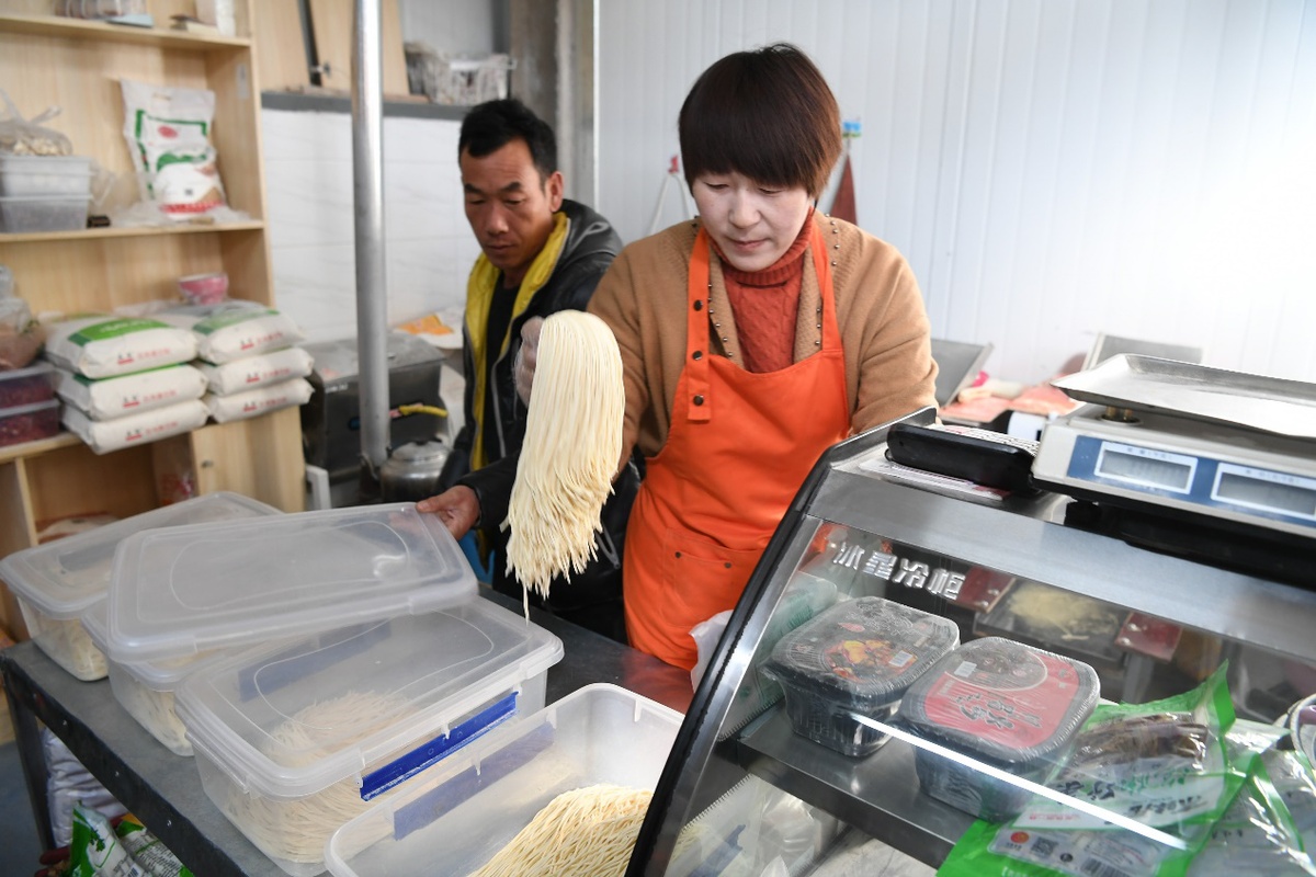王彩霞说,卖得最好的就是面条,逢2、5、8赶集的日子生意更好,一天能卖一袋面。