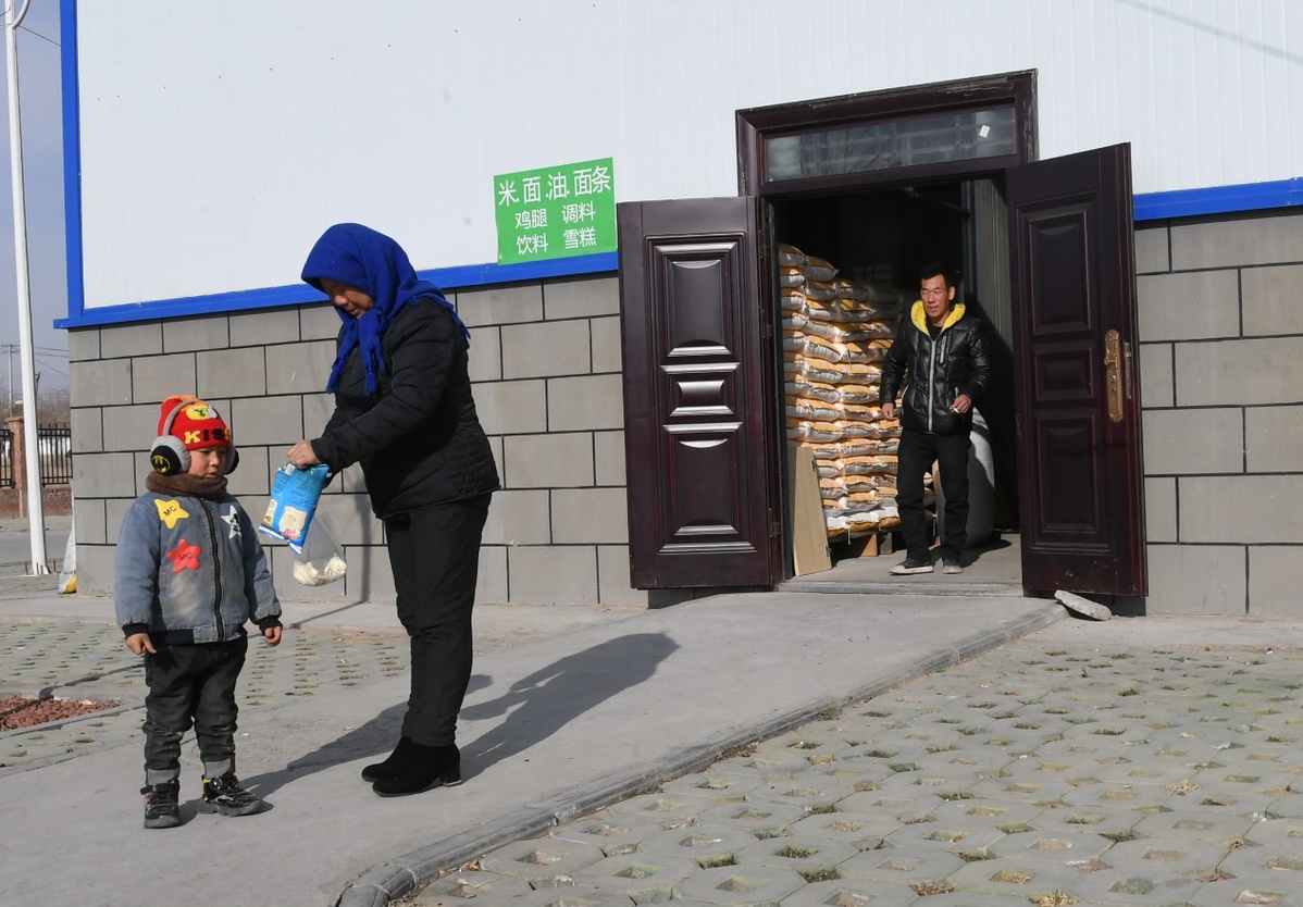 33岁的王彩霞和丈夫郑发雷2013年搬迁从宁夏隆德温堡乡搬迁至闽宁镇,看到记者,满脸笑容的王彩霞笑着说家就住在这里的北区17排,以前到处打工,工地、家政,葡萄园,哪里有活就去哪里。今年5月8日夫妻俩也来到这个扶贫集市开了自己的粮油店,投入2万多,现在店里的货也越来越多,过去每个月卖20袋面,半年多时间每月能卖80袋。