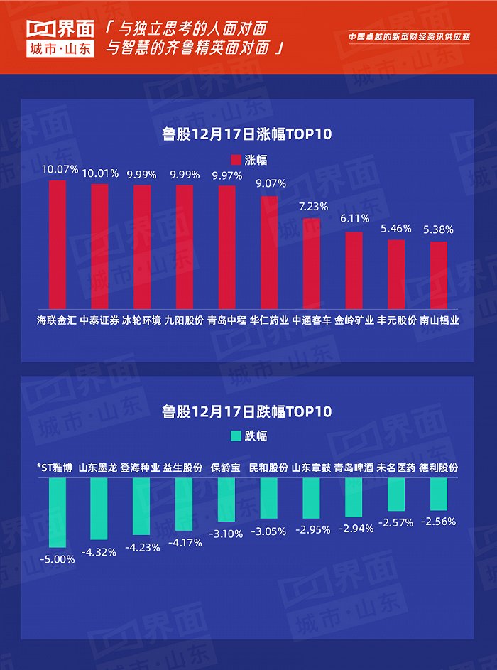 原标题:鲁股观察 |12月17日:海联金汇等4股涨停,山东共152只个股上涨
