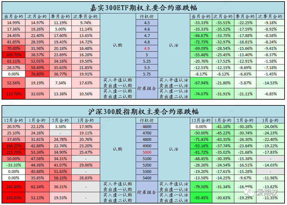 认购期权、牛市价差均获翻倍收益。今日认购期权大幅上涨,当月平值、浅虚值认购、牛市价差组合均有超过翻倍收益,其余各月认购合约也均有不错表现。