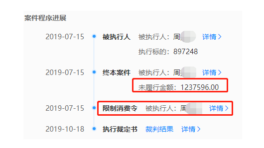 江海证券赢了官司,但并没能拿到足额款项。周某成为“负翁”,被查封、冻结了相关资产,还收到限消令。