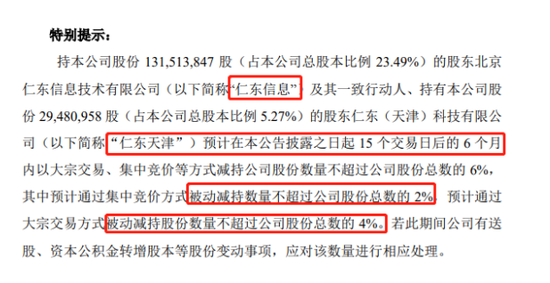 16日晚间,仁东再次公告称,仁东信息和仁东天津未来将被动减持公司股份,减持股份总数不超过总股本6%。