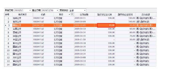 Choice金融终端数据显示,自去年至今,约有14家券商将仁东控股纳入两融标的,包括招商证券、山西证券、中信证券、华泰证券、国元证券等等。其中,国融证券给出的融资保证金比例(投资者融资买入证券时交付的保证金与融资交易金额的比例)仅为45%,其它有数据可寻的券商均为100%。